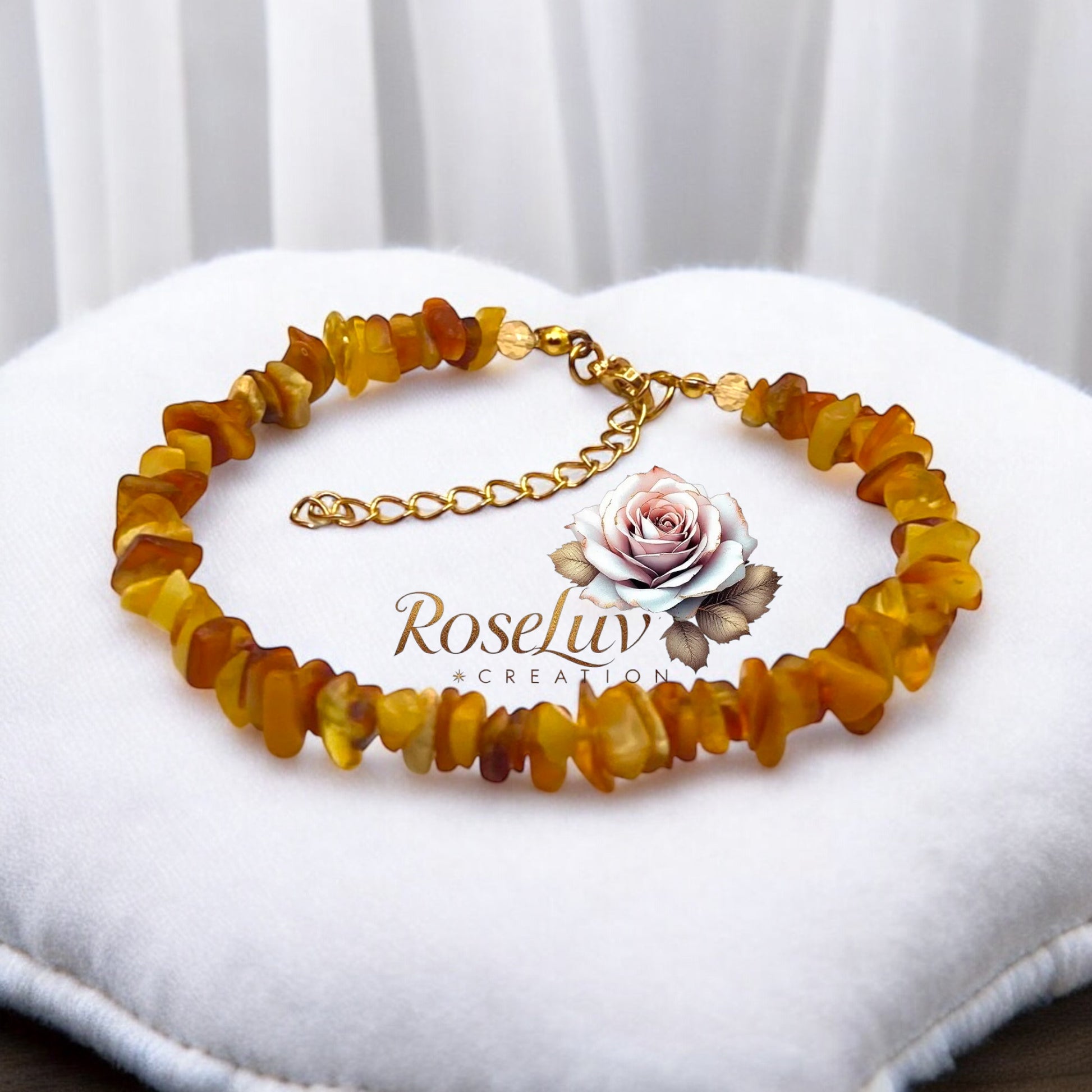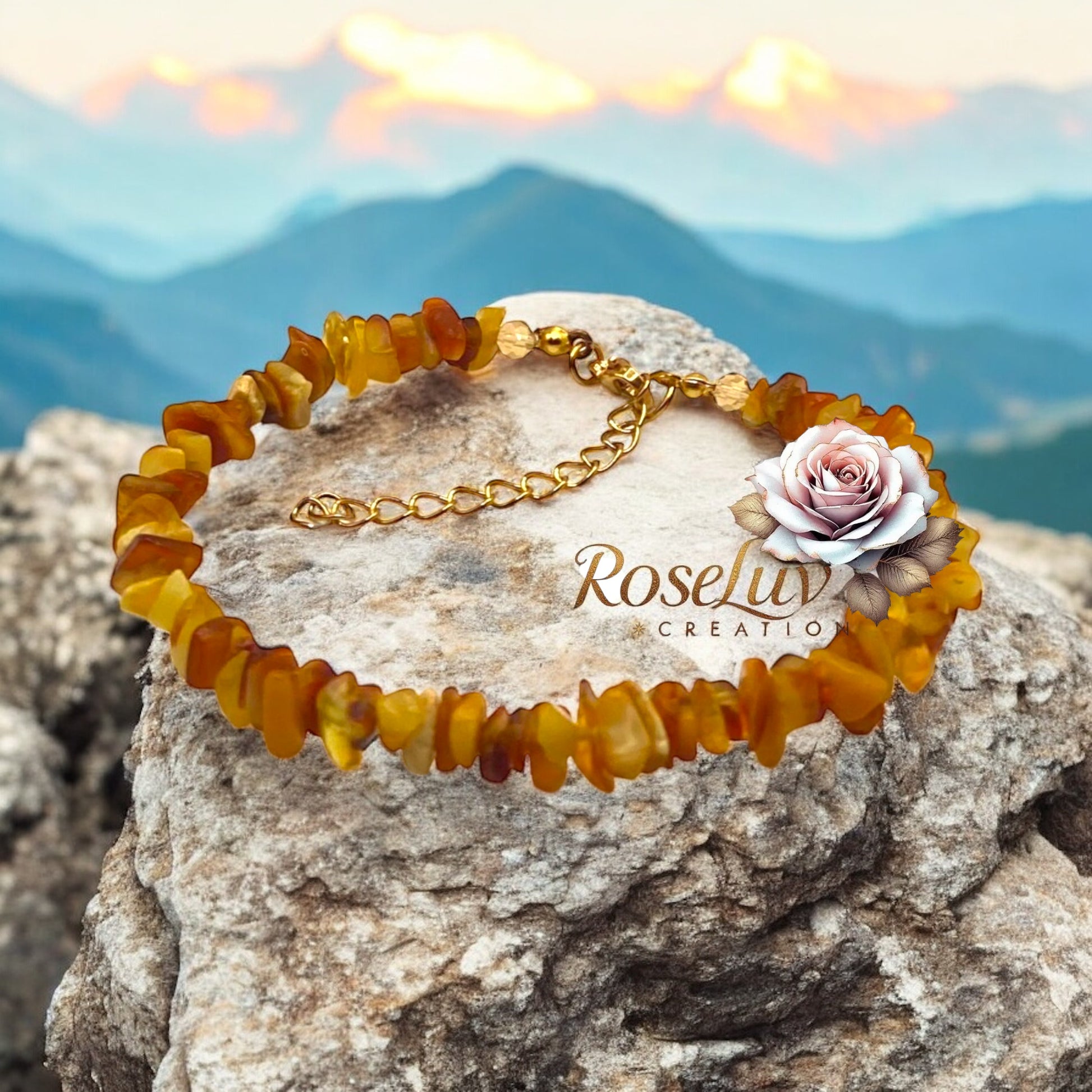 Rayonnez avec chaleur et authenticité grâce au bracelet de cheville “Ambre”. Composé d’éclats de pierres naturelles dans des tons miel et caramel, ce bijou évoque la force de la terre et l’énergie du soleil.