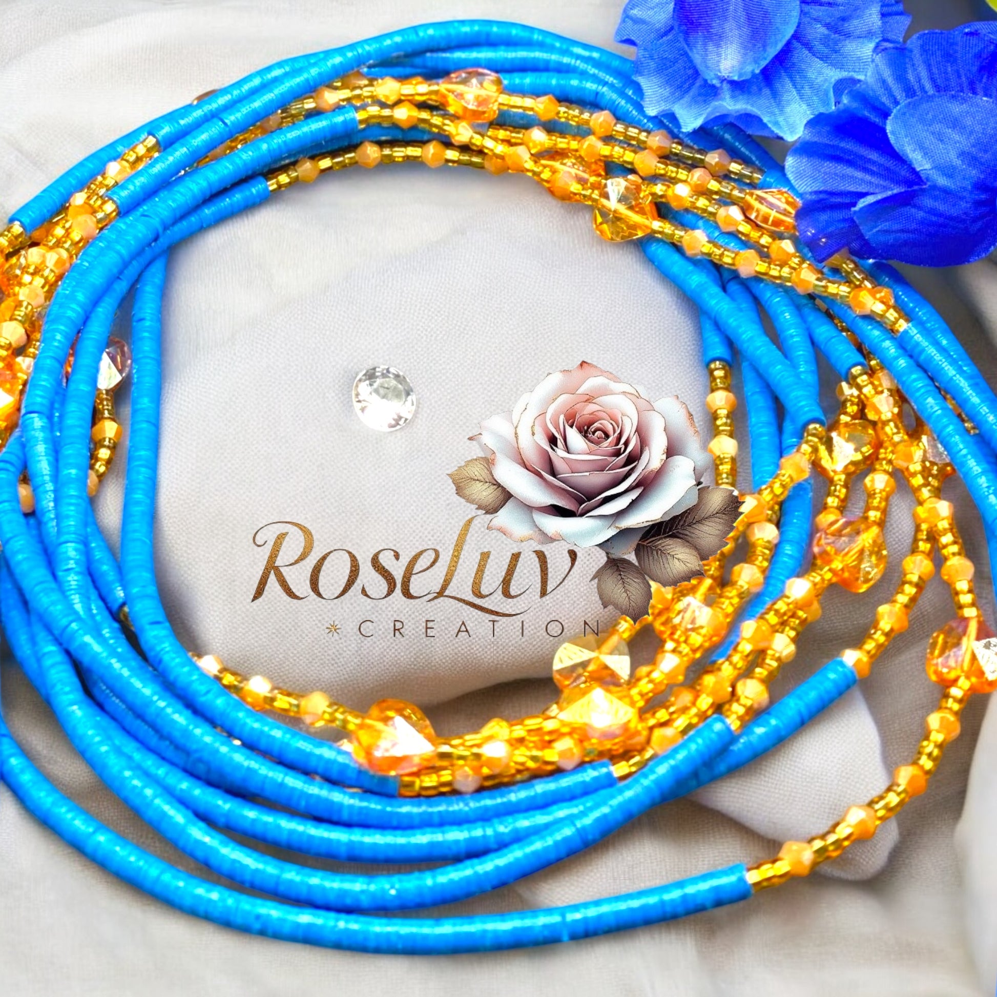 - Matériaux : Perles en vinyle, perles de rocaille dorées, cristaux facettés