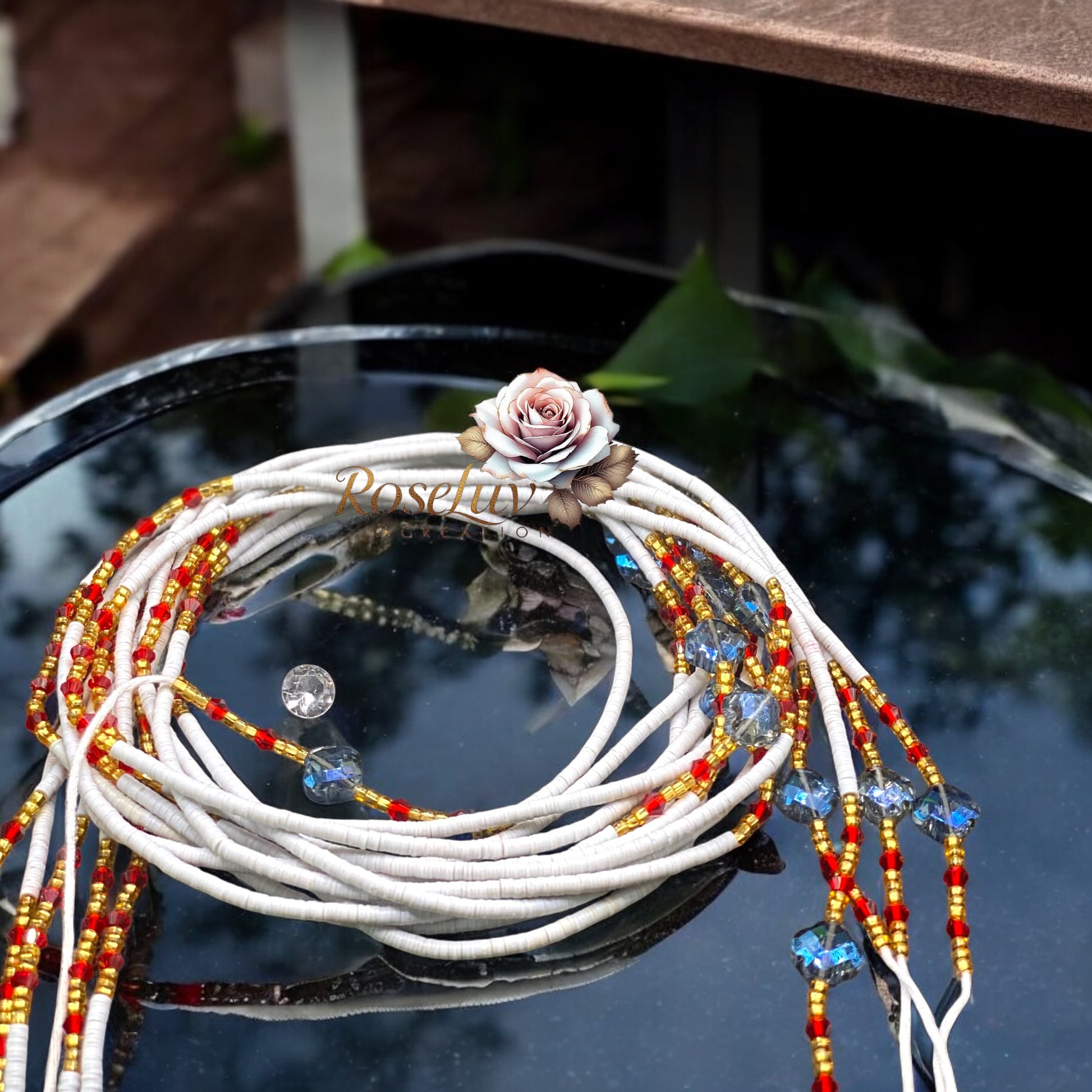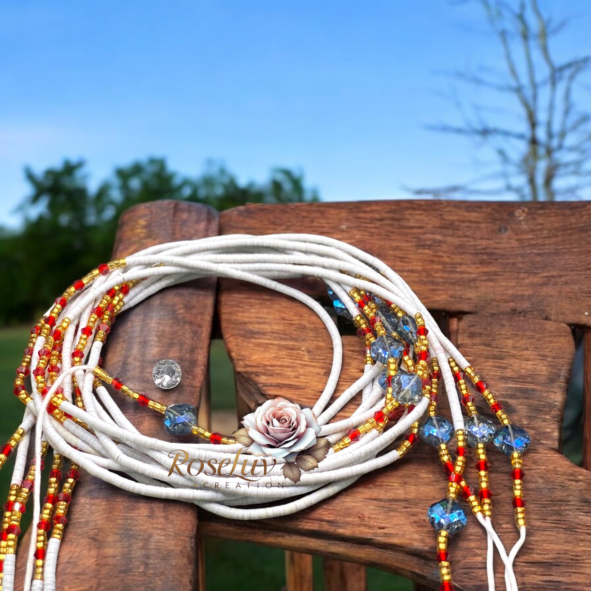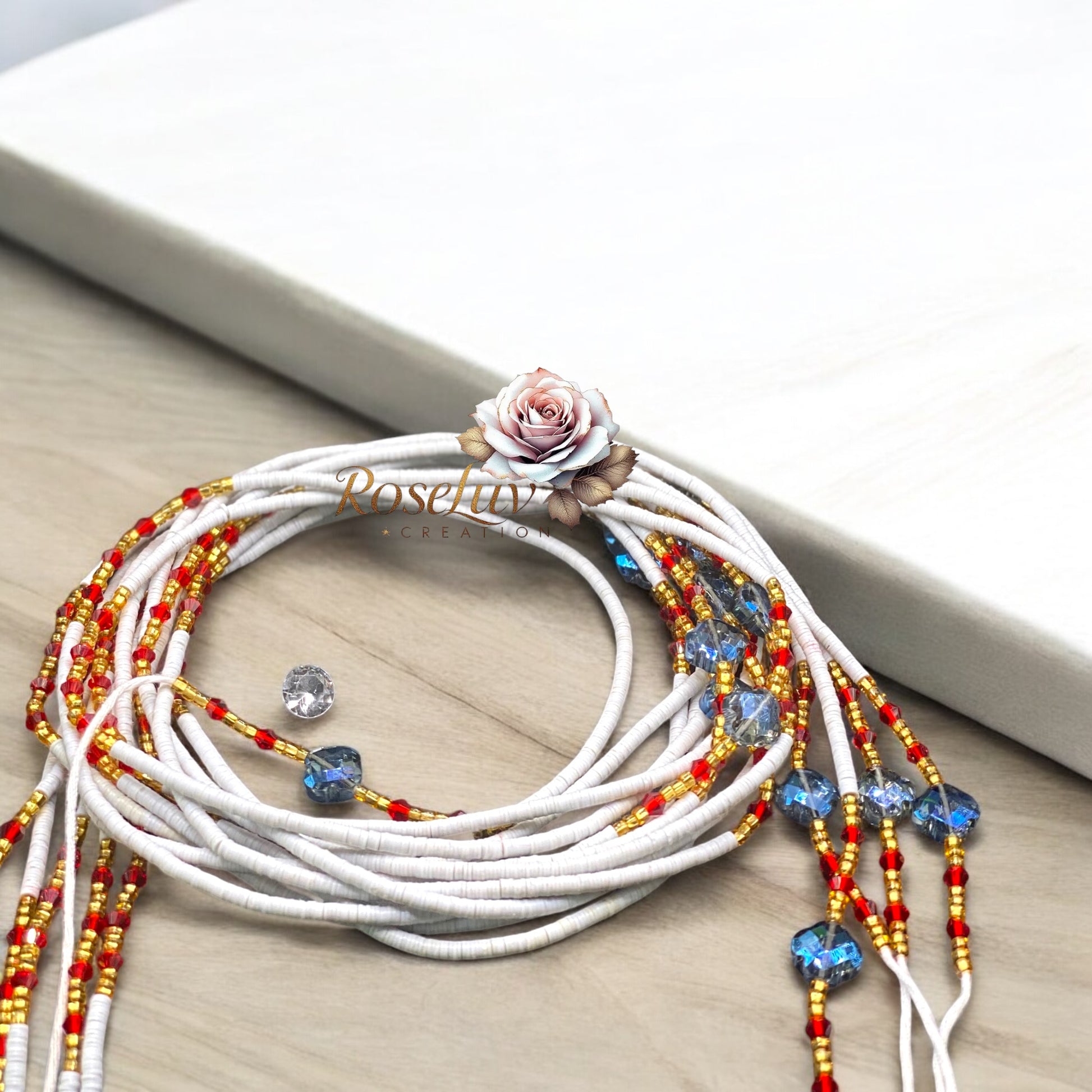 Laissez-vous emporter par l’énergie envoûtante de Calypso, une perle de taille qui célèbre la mer, le soleil et la féminité. Son mélange harmonieux de perles blanches en vinyle, dorées et rouges, rehaussé de cristaux bleus étincelants, évoque les vagues lumineuses et la chaleur tropicale. À la fois vibrante et apaisante, elle incarne la liberté, la sensualité et la force intérieure.
