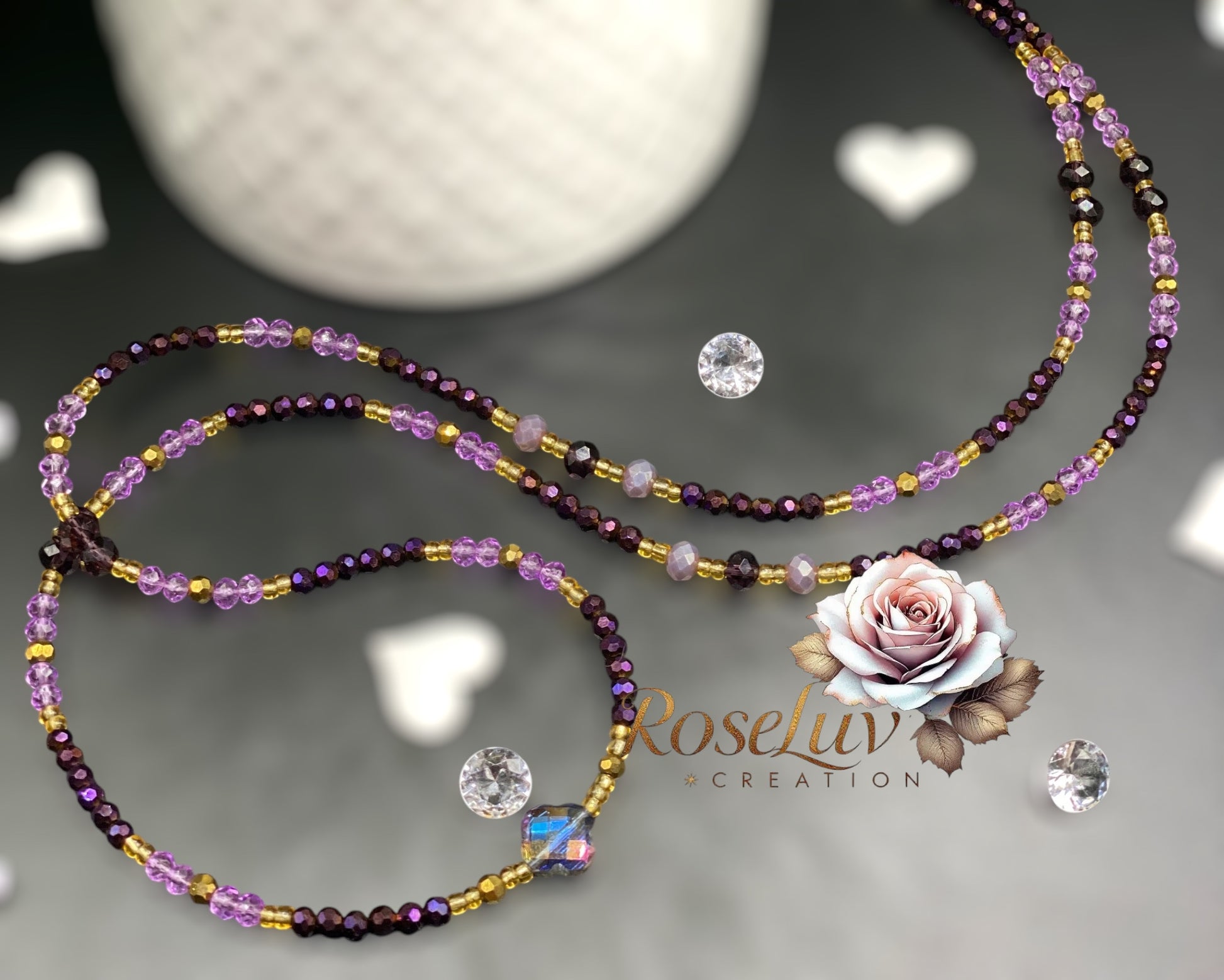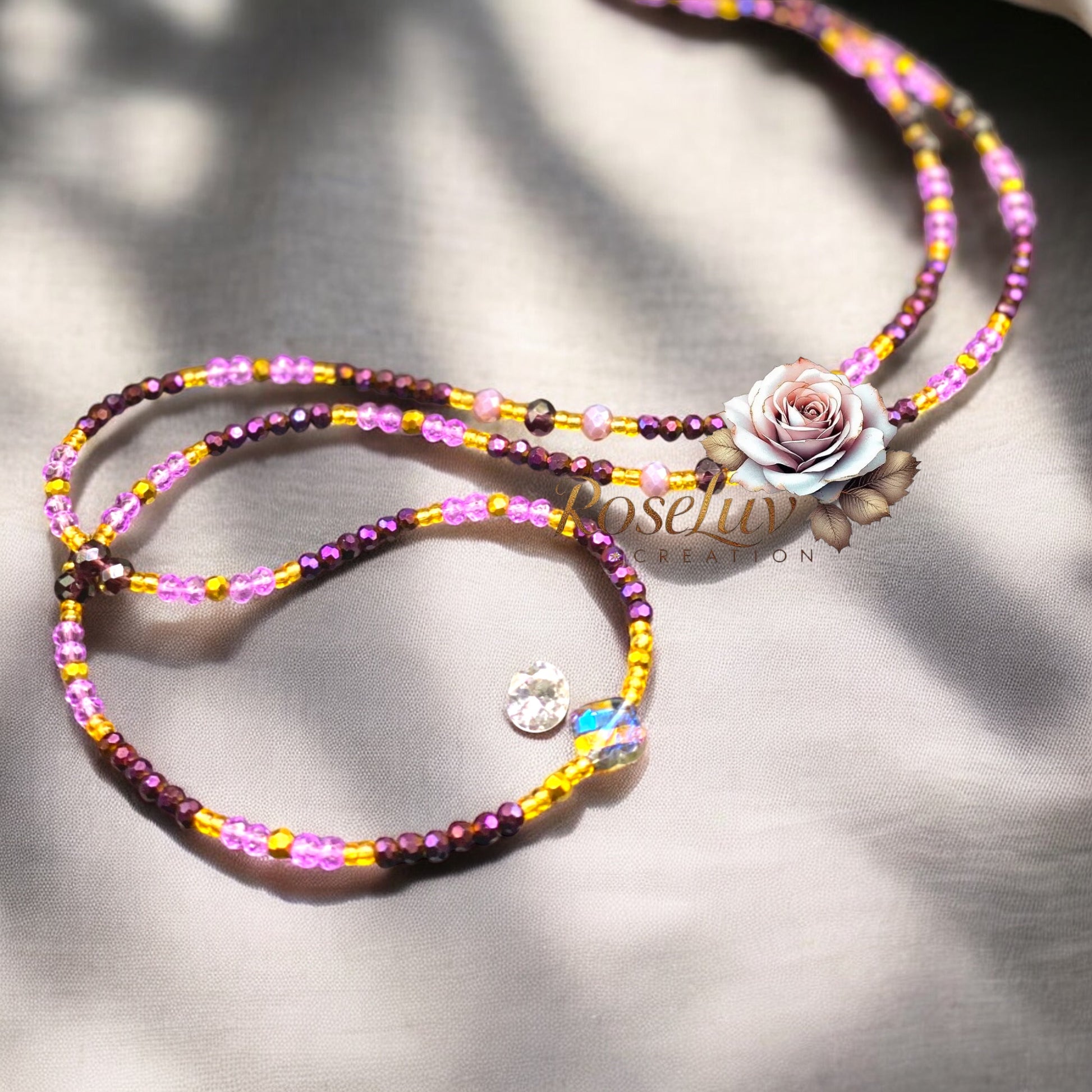 Ciia est une perle de taille envoûtante, où se rencontrent le violet lumineux, le bordeaux profond, le doré royal et le mauve pâle. Ce bijou incarne la féminité intuitive, la sensualité discrète et la lumière intérieure. Chaque perle reflète la douceur et la force d’une présence affirmée, délicate et irrésistible.