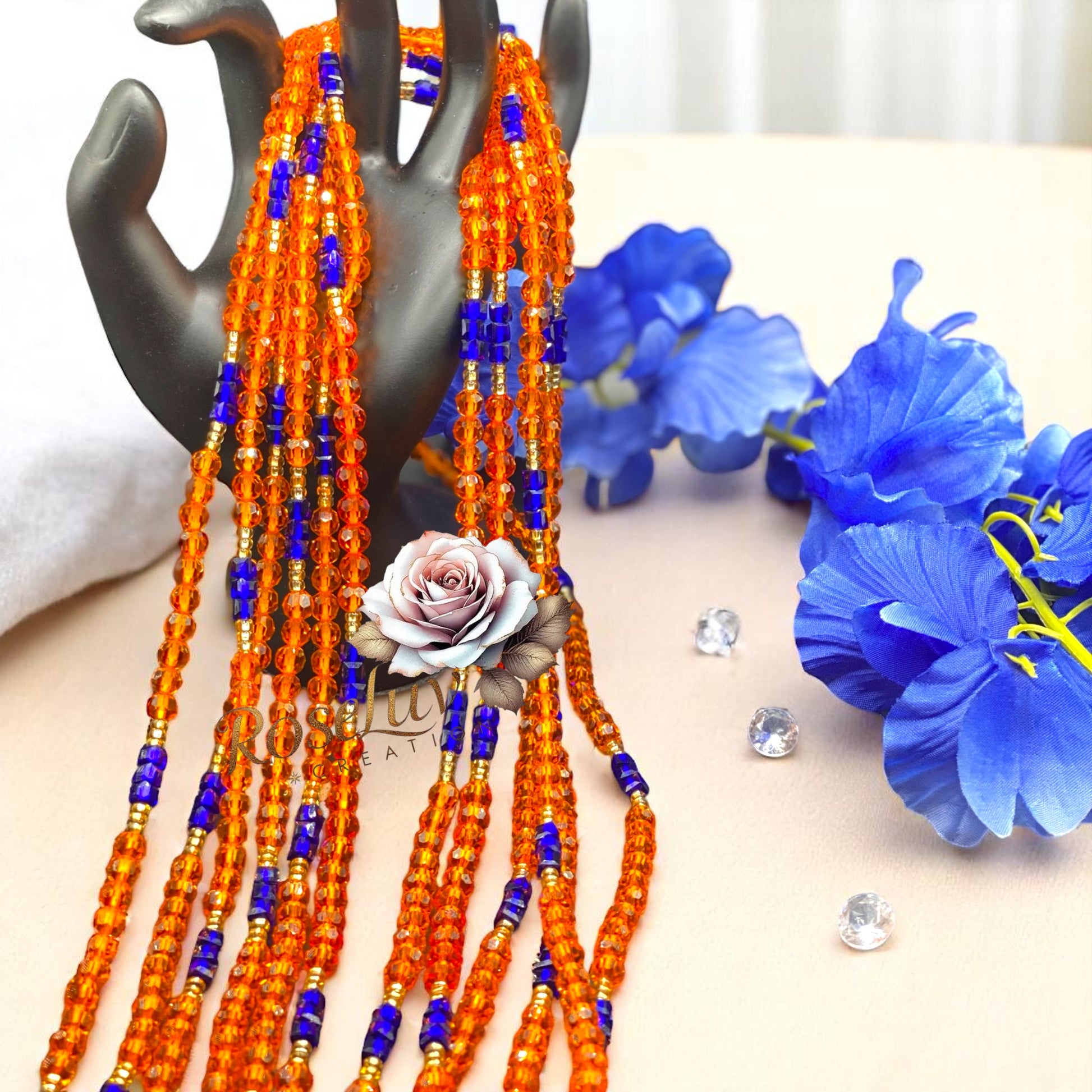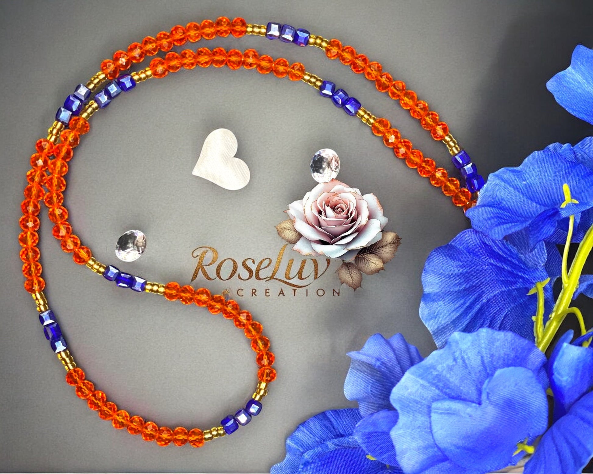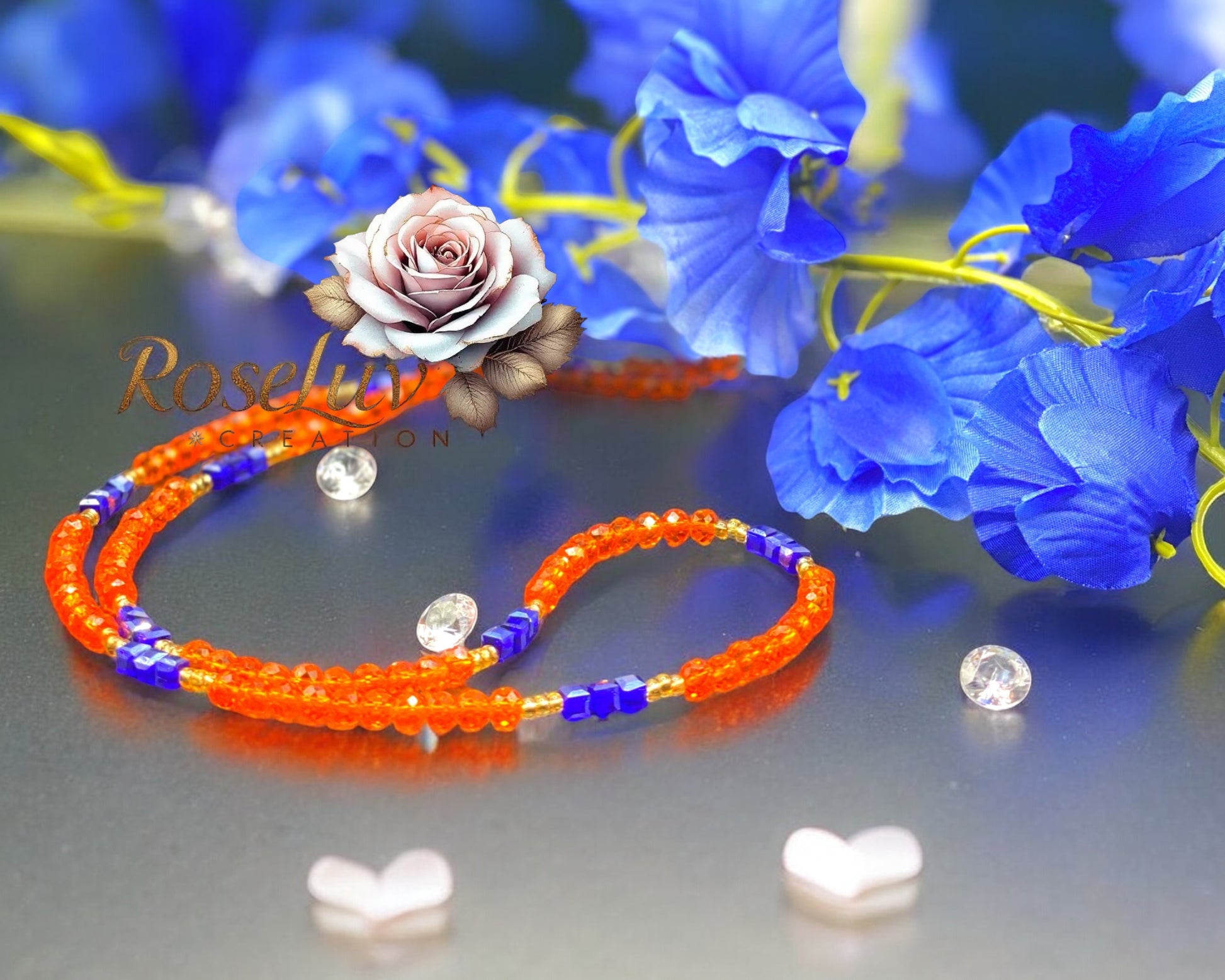 Flamma est une perle de taille audacieuse qui unit l’intensité du orange flamme, la richesse du bleu royal et la brillance du doré lumineux. Cette combinaison dynamique incarne la passion, la force d’expression et la noblesse intérieure. Chaque cristal reflète la lumière avec éclat, faisant de ce bijou un symbole de puissance féminine et de charisme.