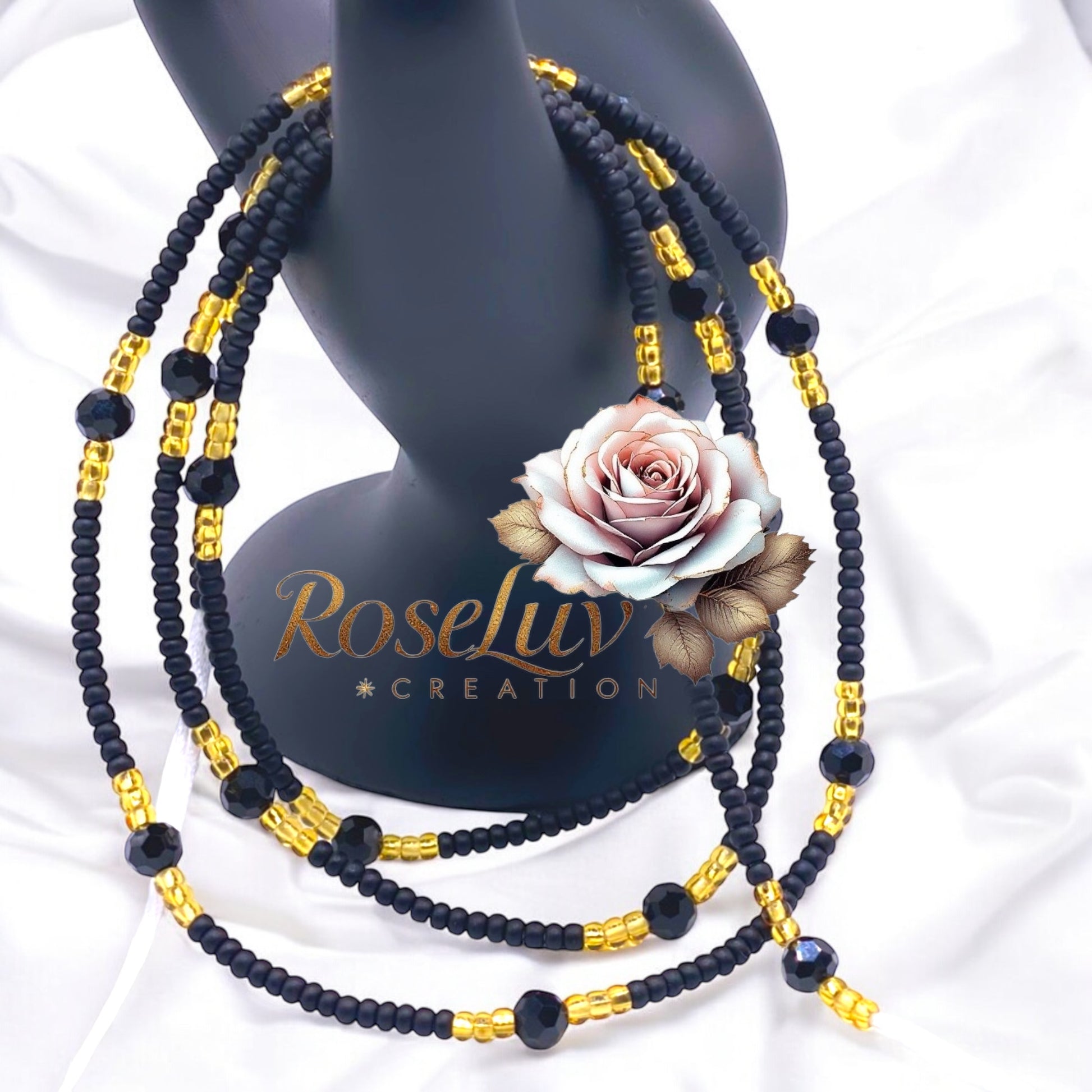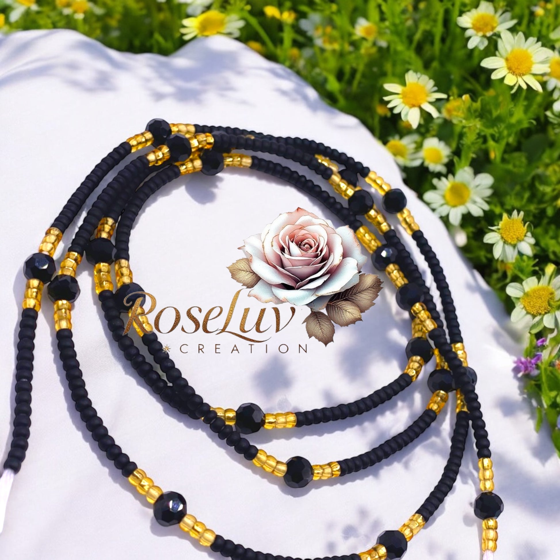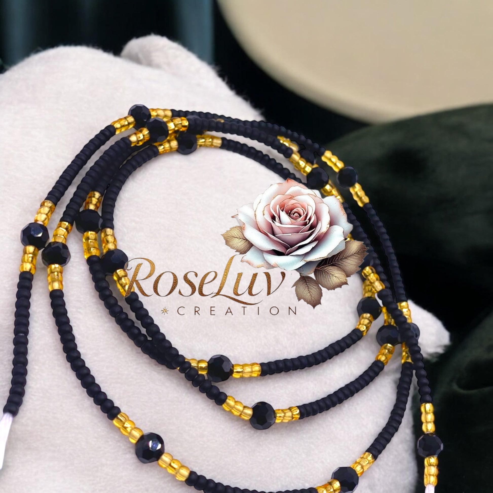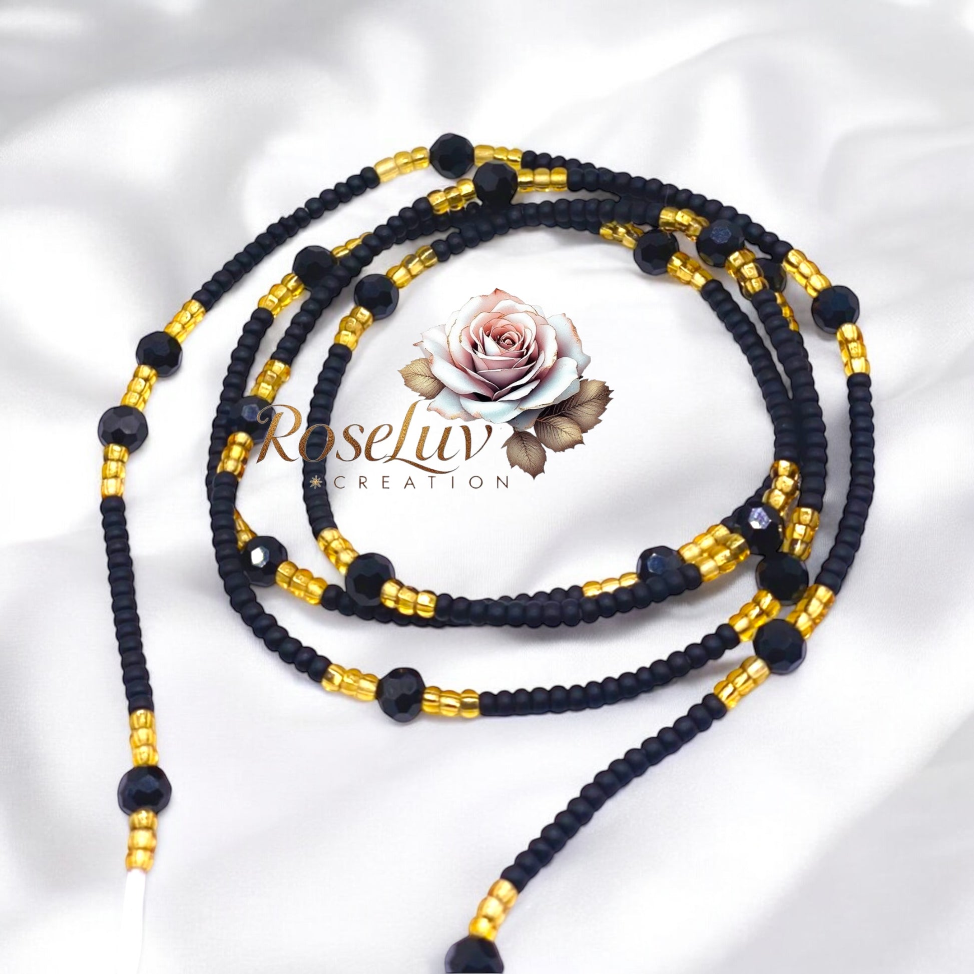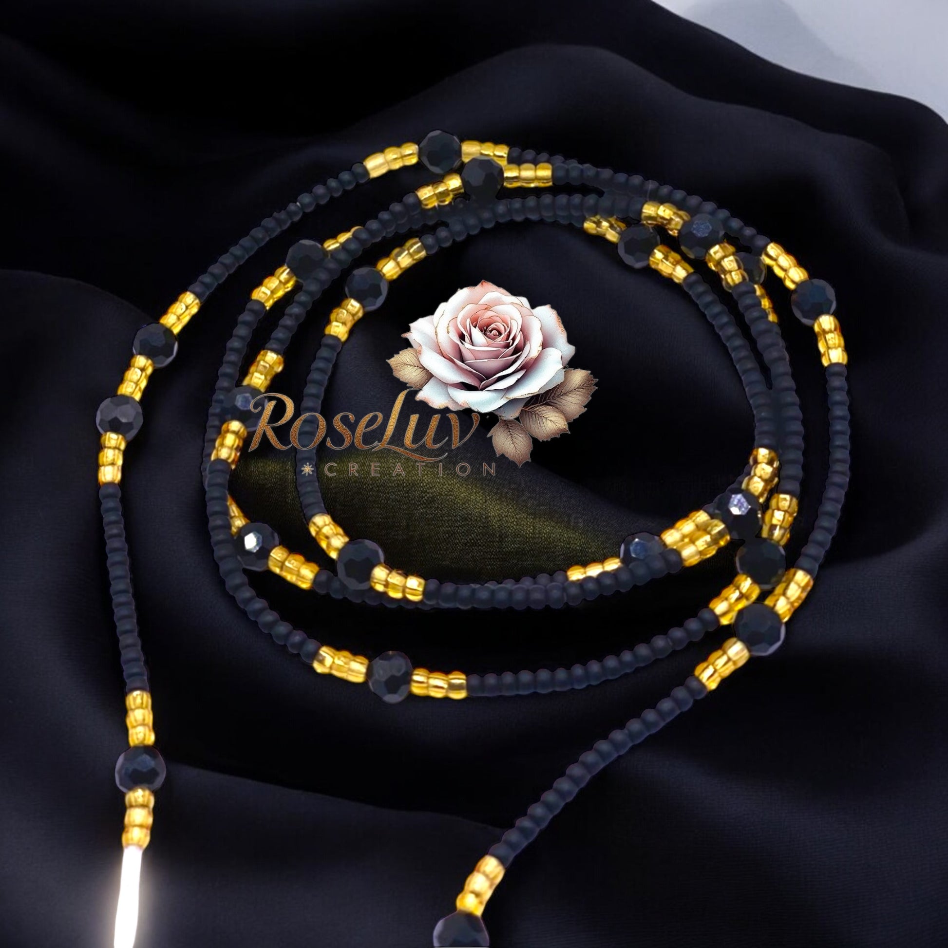 Mystérieuse et puissante, la perle de taille Onyx associe l’intensité du noir profond à l’éclat raffiné de l’or. Composée de perles noires mates et de cristaux facettés entrecoupées de perles dorées lumineuses, elle incarne la force, la protection et l’élégance. Onyx est pensée pour les femmes affirmées qui embrassent leur pouvoir intérieur avec style et assurance.