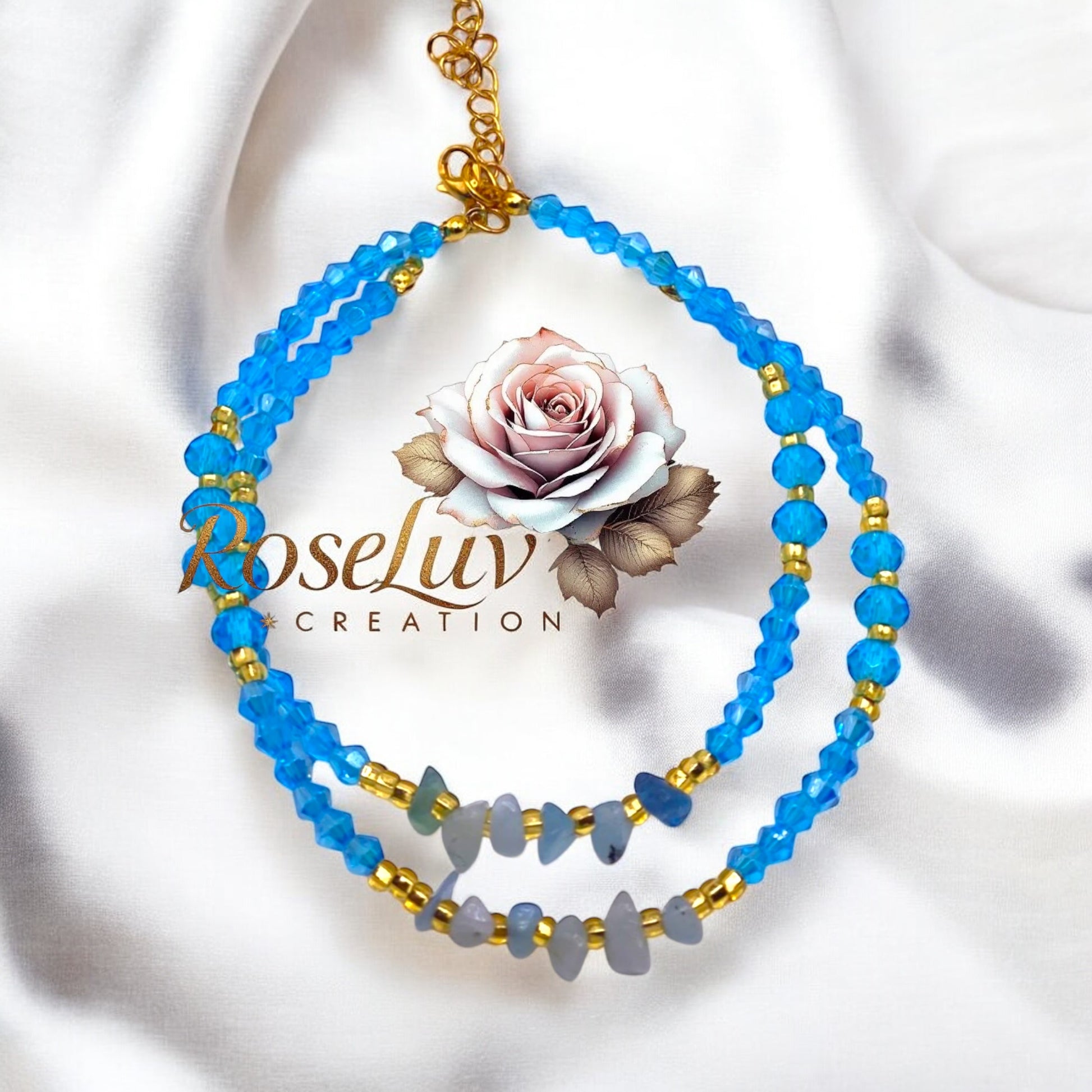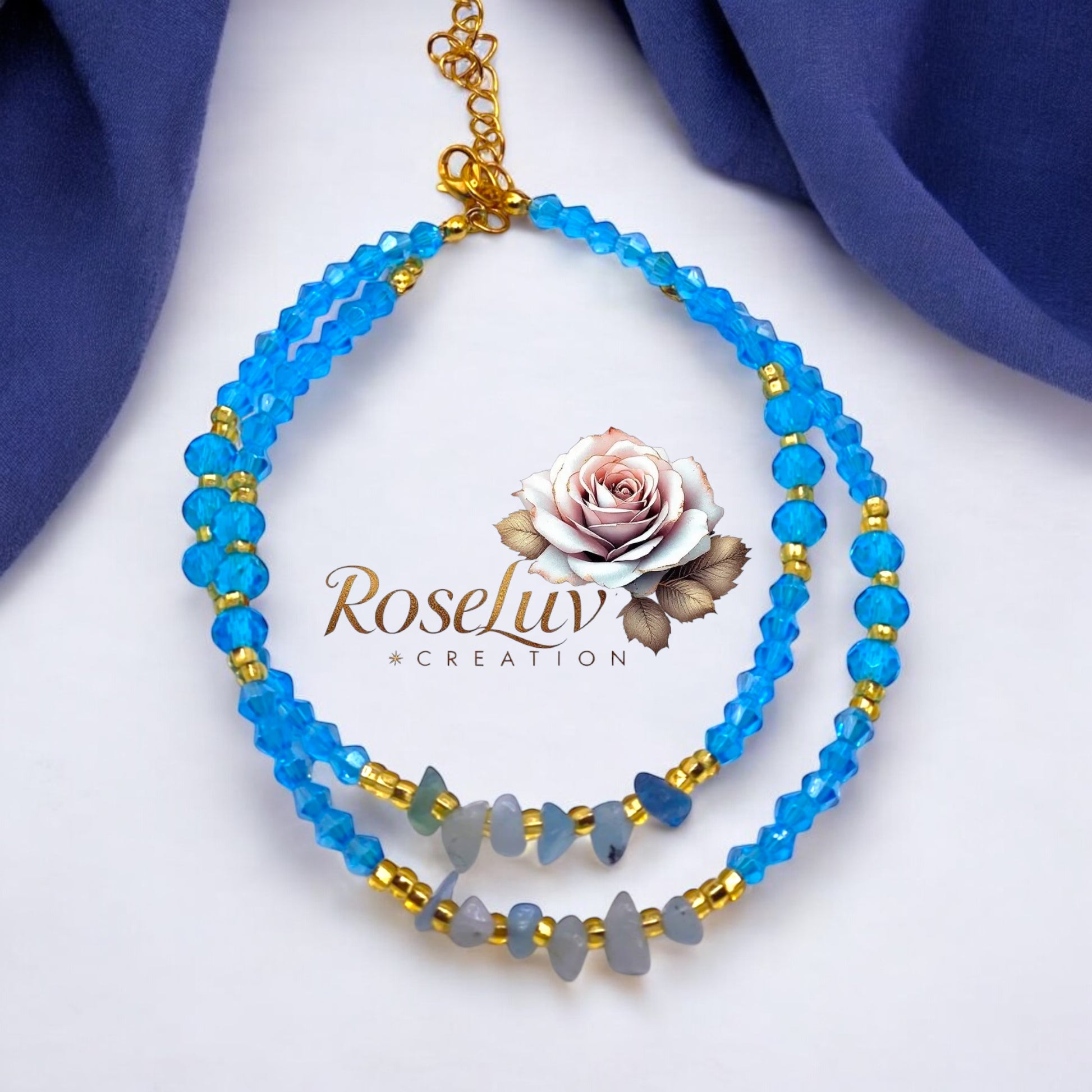 Le bracelet de cheville Sky évoque la clarté du ciel d’été avec ses perles bleu azur éclatantes, sublimées par des touches dorées et des éclats de pierres naturelles bleu pâle. Léger, lumineux et rafraîchissant, ce bijou apporte une sensation de liberté et de sérénité à chaque pas.