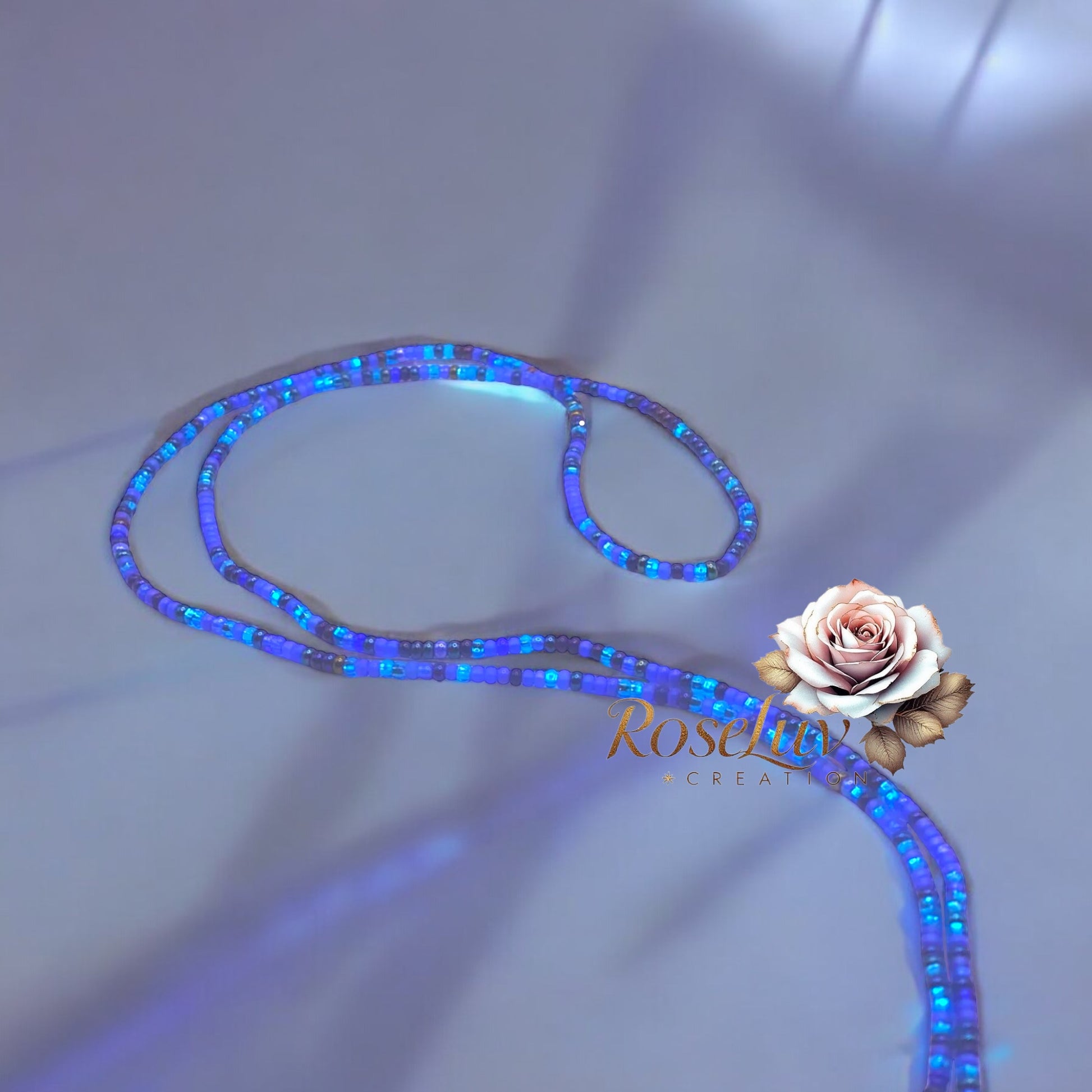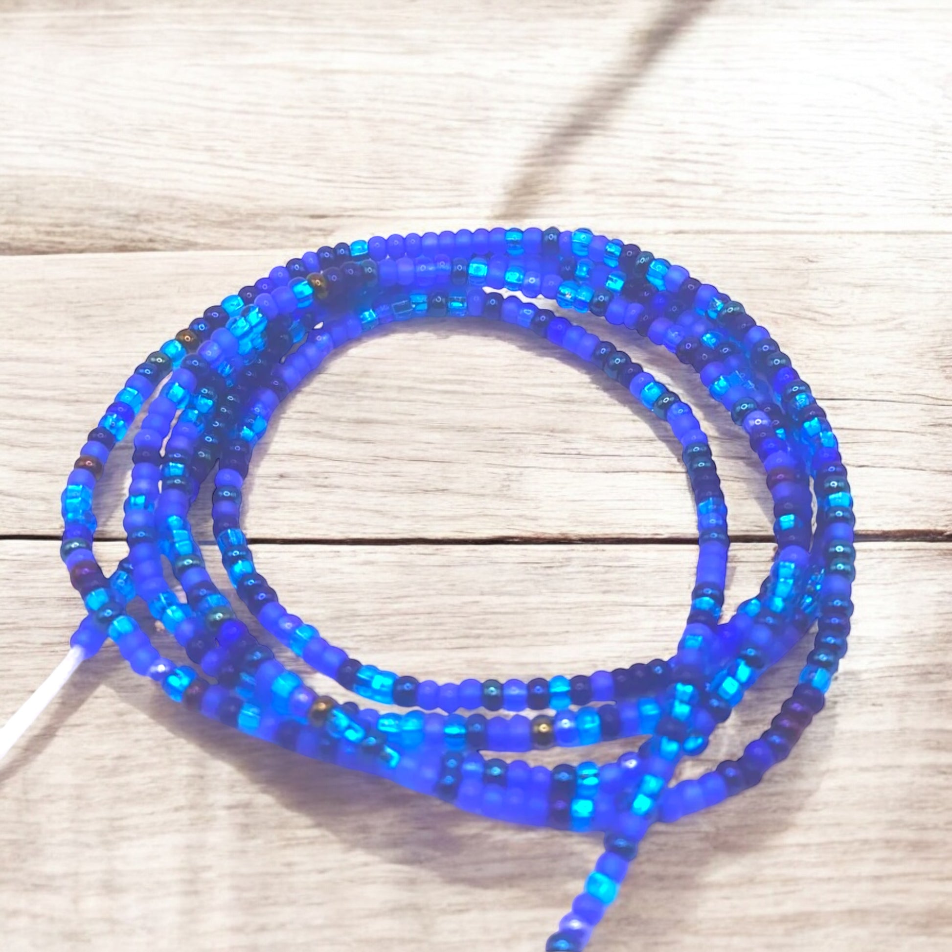 Découvrez la magie du bleu profond avec ces perles de taille aux nuances hypnotiques. Ce modèle associe des tons bleus intenses et lumineux, mêlant perles mates et brillantes pour un effet visuel captivant. Parfait pour celles qui souhaitent allier mystère et sophistication dans leur style quotidien.