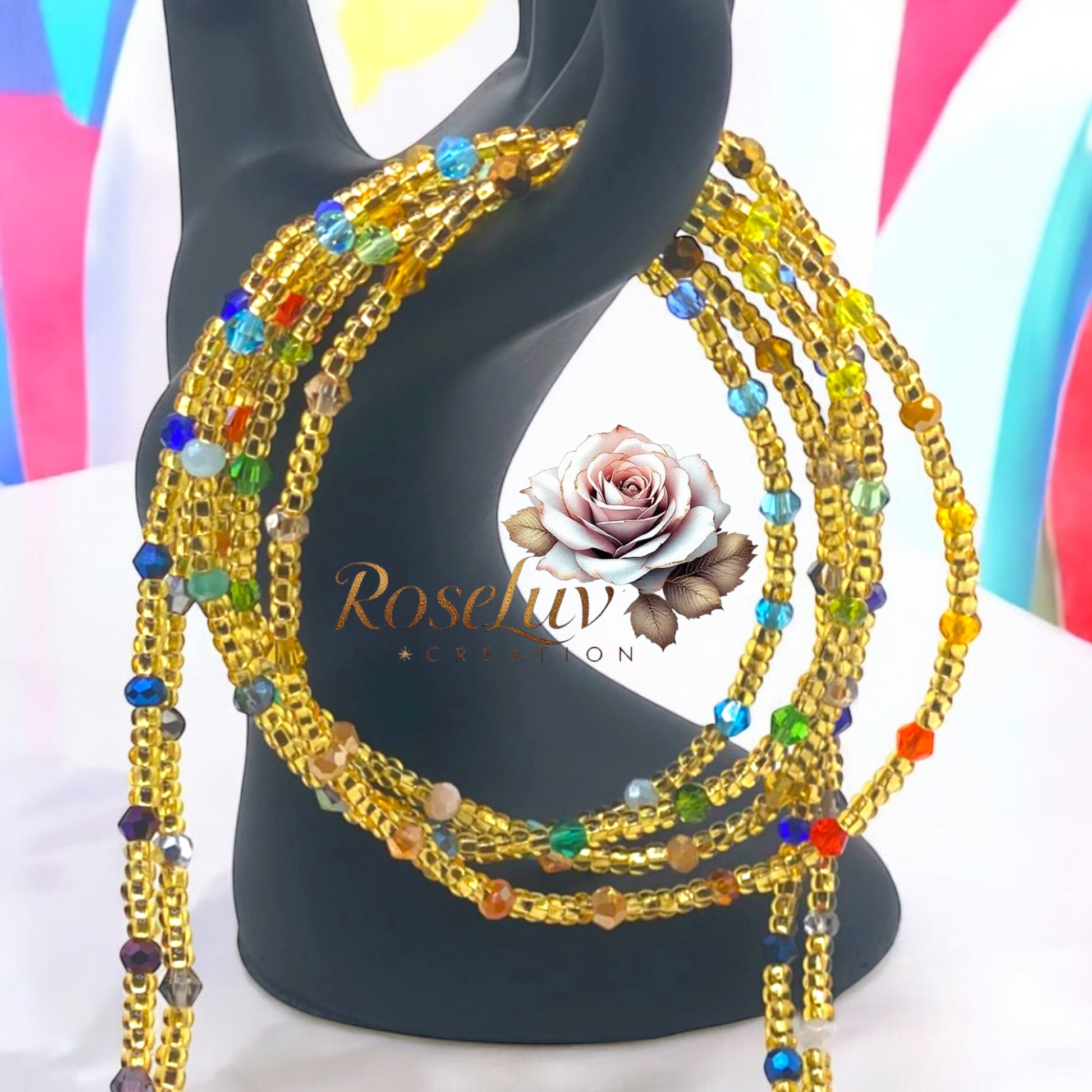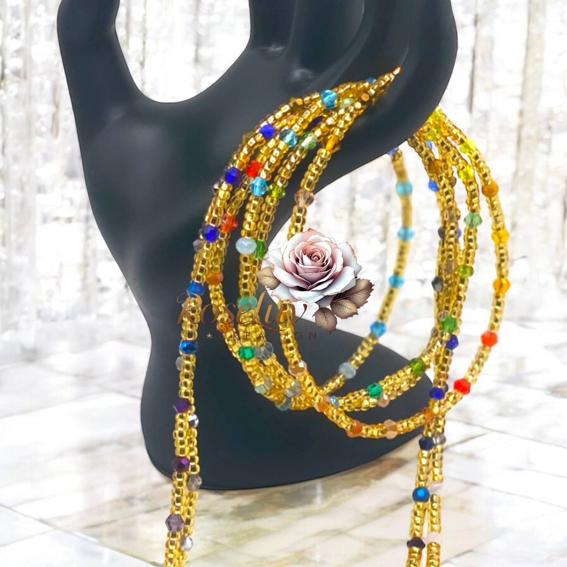 Ce bijou unique mêle des perles dorées éclatantes à des cristaux colorés soigneusement choisis, chacun apportant sa propre vibration. Conçu pour celles qui embrassent toutes les facettes de leur féminité, Vibora incarne la richesse intérieure, l'équilibre des énergies et l’expression libre de soi.